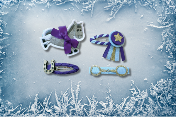 Fun and stylish: four distinct equestrian-inspired clips (pony, bit, rosette, horseshoe) perfect for younger riders or gifts.
