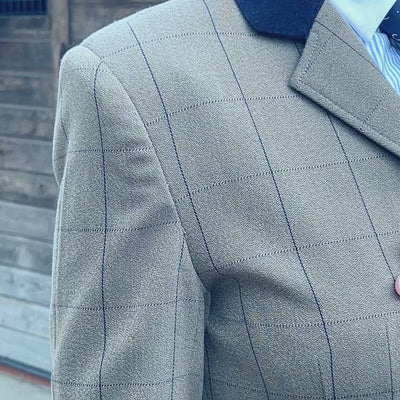 Introducing the Exclusive Equetech Bellingham tweed riding jacket, carefully crafted with added spandex for unparalleled comfort both in and out of the saddle. This exceptional piece showcases a subtle Navy over check design, exuding elegance and sophistication.