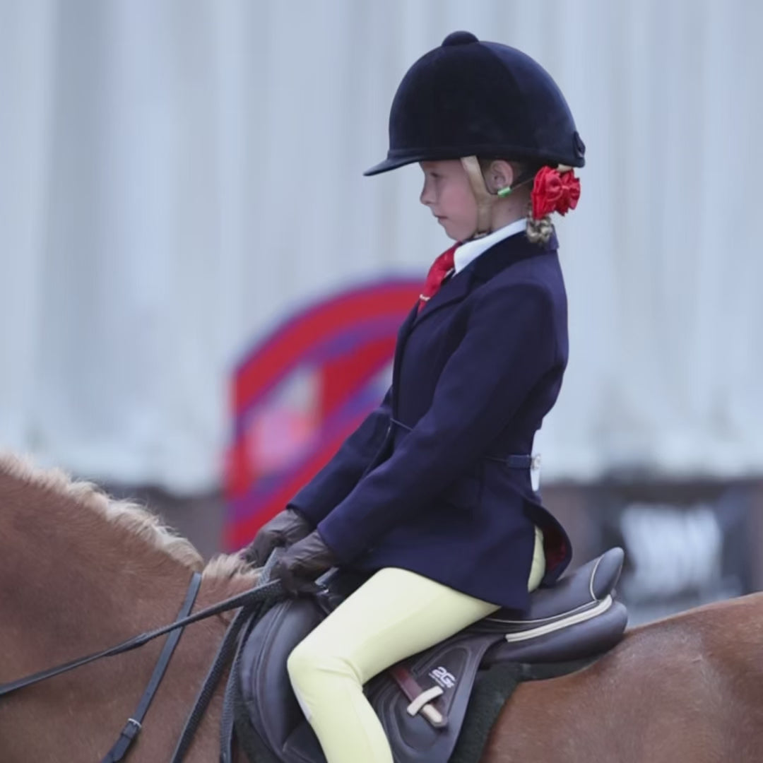 The tailored fit complements the young rider’s posture, presenting a polished appearance which showing judges appreciate. Traditionally favoured in navy for the show ring, this jacket’s timeless, quintessentially British design also makes it suitable for various equestrian disciplines, including hunting and dressage, embodying a harmonious blend of style, comfort, and functionality.